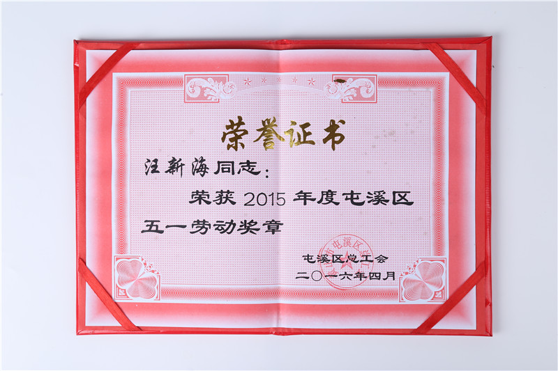 2015年度屯溪區五一勞動獎章